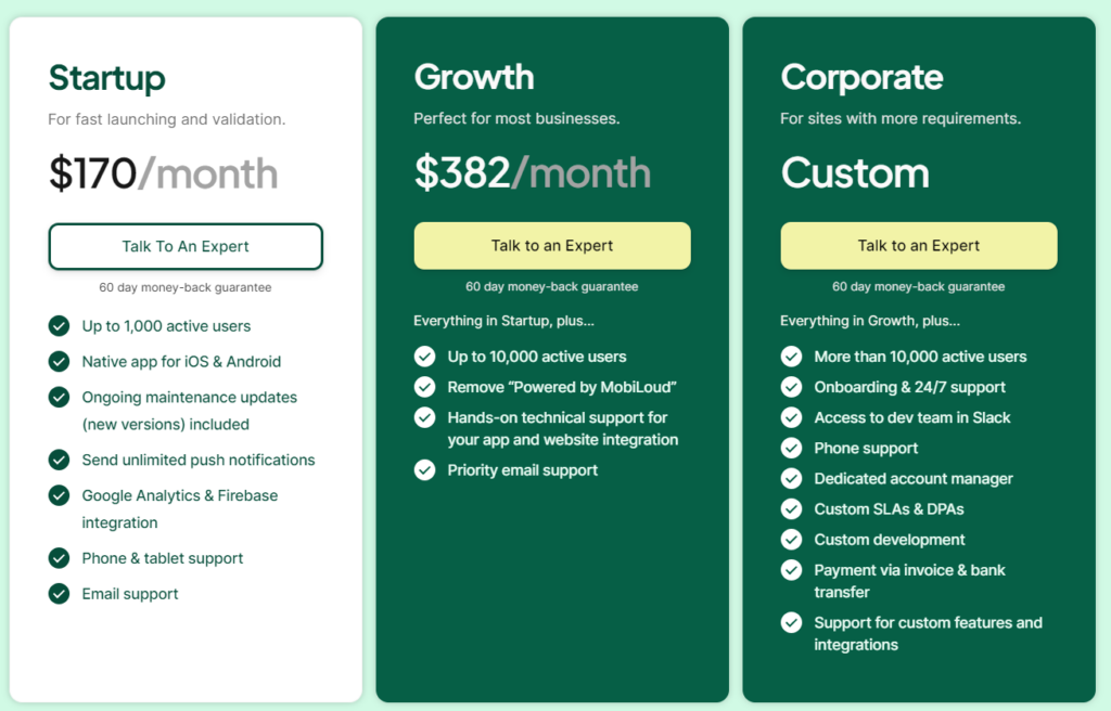 | MobiLoud | $170/month | 4.7 based on 79 reviews |