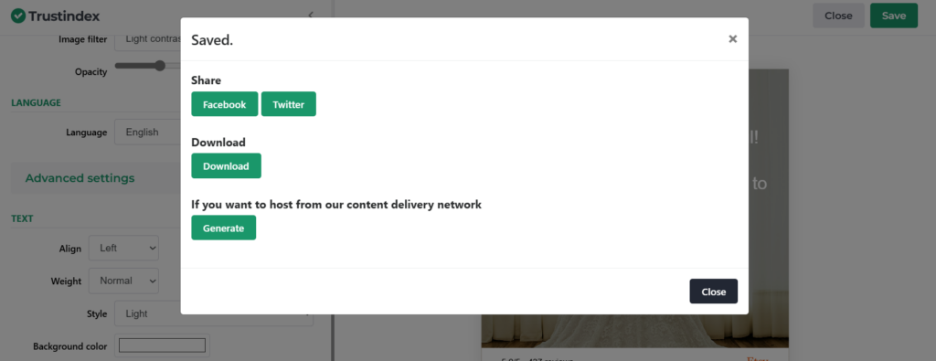 Turn your brightest reviews into eye-catching images effortlessly – share them on your social media platforms to build even more trust and strengthen your credibility!