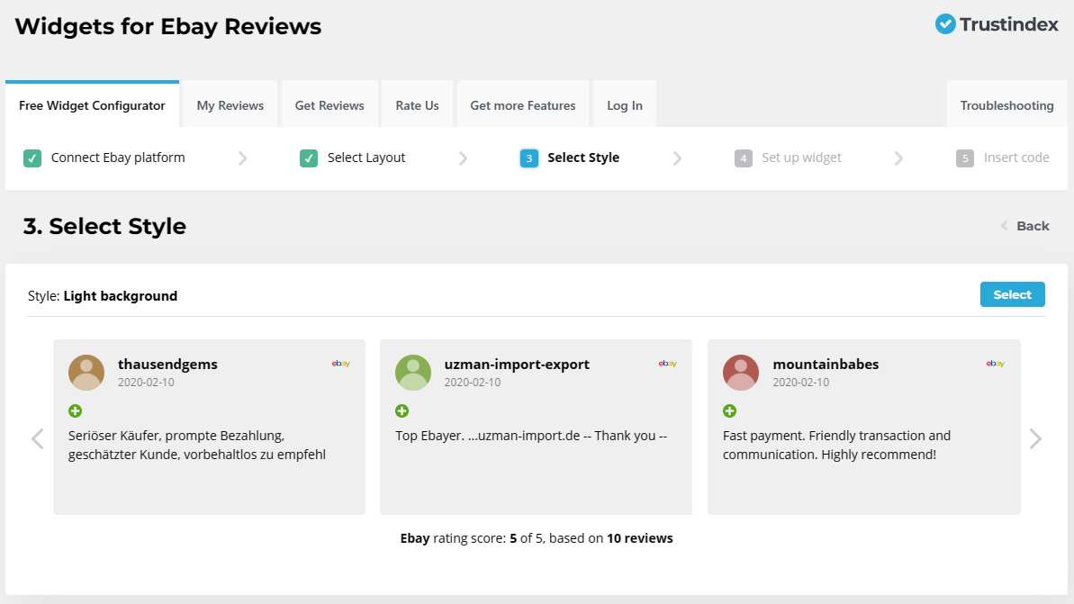 It’s easy to add eBay reviews to your own website with us! Here is a step-by-step guide on how to do it, after creating a free account at Trustindex.